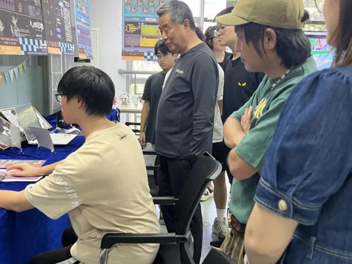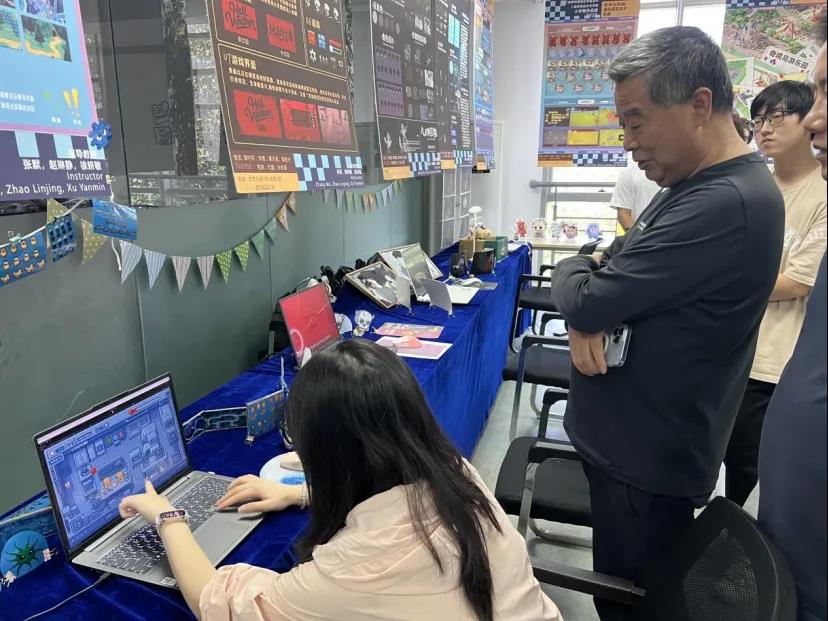 项目展期间,数字艺术与设计学院李成家院长亲临现场,在对展览整体质量给予高度评价的同时,院长结合当前虚拟现实技术发展现状与应用需求,对不同年级作品进行了精准点评与方向指引。针对大一年级的 “二维游戏设计与开发” 项目,他指出,当前部分作品虽实现了基础技术功能,但仍存在 “重技术、轻内容” 的倾向。“游戏创作不应仅停留在技术实现的层面,更应注重剧情架构与美术表现的深度融合。” 他进一步强调,游戏美术设计需具备商业转化意识,同时鼓励学生从中国历史与传统文化中汲取养分 —— 正如优秀的虚拟体验应扎根文化内核,游戏也可成为文化传播的媒介,实现文化传承与艺术创新的双向赋能。“游戏不仅是娱乐的载体,更应是文化的使者。希望同学们能在传统与现代之间找到连接点,用数字语言讲好中国故事。”