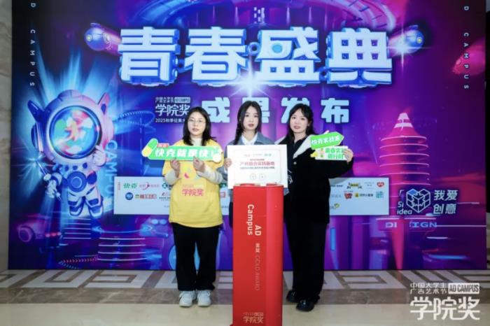 我院师生应邀参加中国大学生广告艺术节学院奖2025秋季征集大赛青春盛典。数字媒体技术系学生团队荣获全国三等奖,并助力学院成功挂牌“产教融合实践基地”。 2025年12月27-29日,数字艺术与设计学院数字媒体技术系张宝丹、张赟老师带领张静同学,应邀前往北京广播大厦参加快克品牌营销策划案实践大赛全国总决赛暨颁奖盛典。