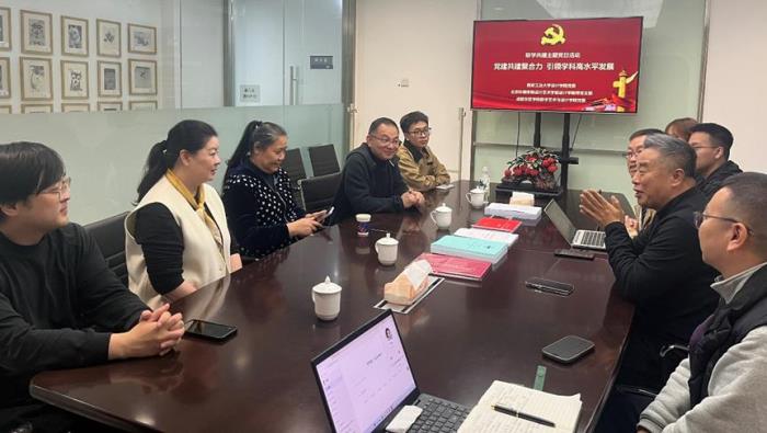 2025年11月7日17时,成都东软学院数字艺术与设计学院党委联合西安工业大学设计学院党委、北京印刷学院艺术设计学院教师党支部,成功举办联学共建主题党日活动。活动采取座谈交流形式,三校党委负责人及嘉宾专家学者,和数字艺术与设计学院一起,围绕党建与业务深度融合、学科高质量发展等议题展开深度研讨。