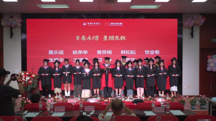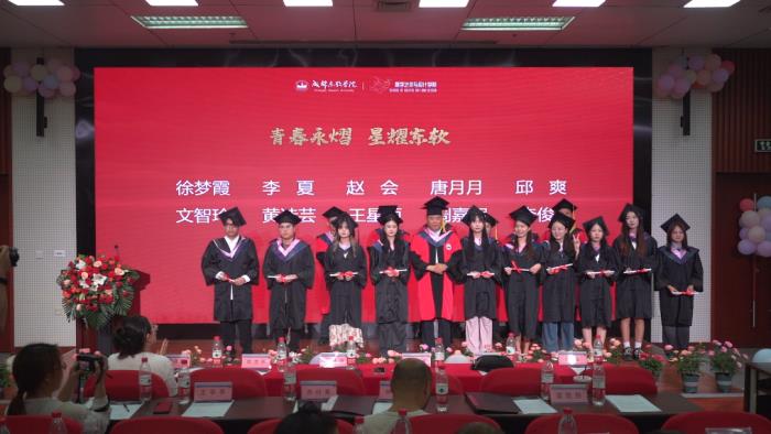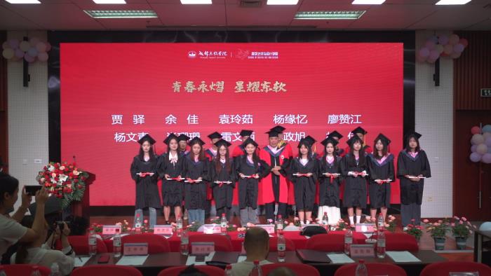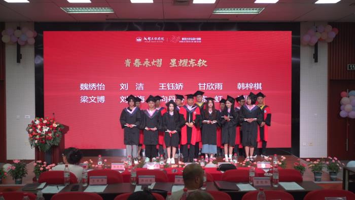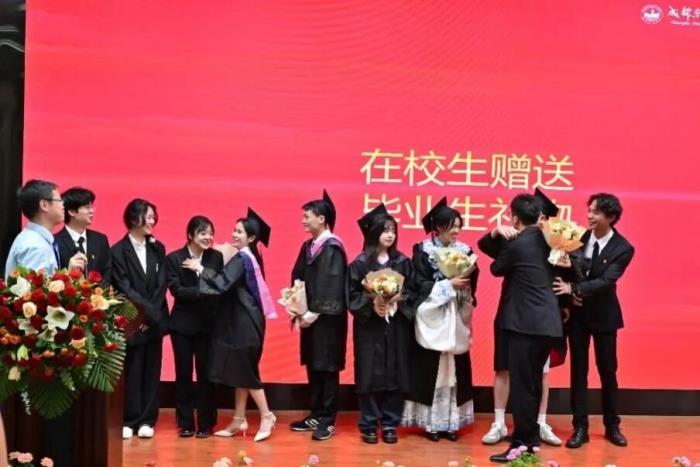 在校生代表们手持鲜花和精美的礼物走上台前,向毕业生代表们献上拥抱,并送上了离别礼物。这些礼物象征着在校生对毕业生们的祝福和不舍,也寓意着学院精神的传承和延续。