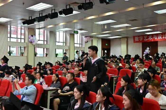 赵壁书记用一段诗意的语言开场,赵壁书记说到,这是一个充满希望的季节,欢聚一堂的我们都有一个共同的名字,成都东软学院数字艺术与设计学院的家人,四年相处下来传承的同样的风骨和精神, 会成为我们未来人生前行中重要的力量。成都东软学院数字艺术与设计学院2021年6月建院后的每一年都会为毕业生多做一件事,往年的送别活动,有香槟与蛋糕的难忘时刻。今年首次组织学院的毕业典礼活动,力求拉近距离,多一点的仪式感和参与感。这是艺术学院想要给到毕业生的诚意。