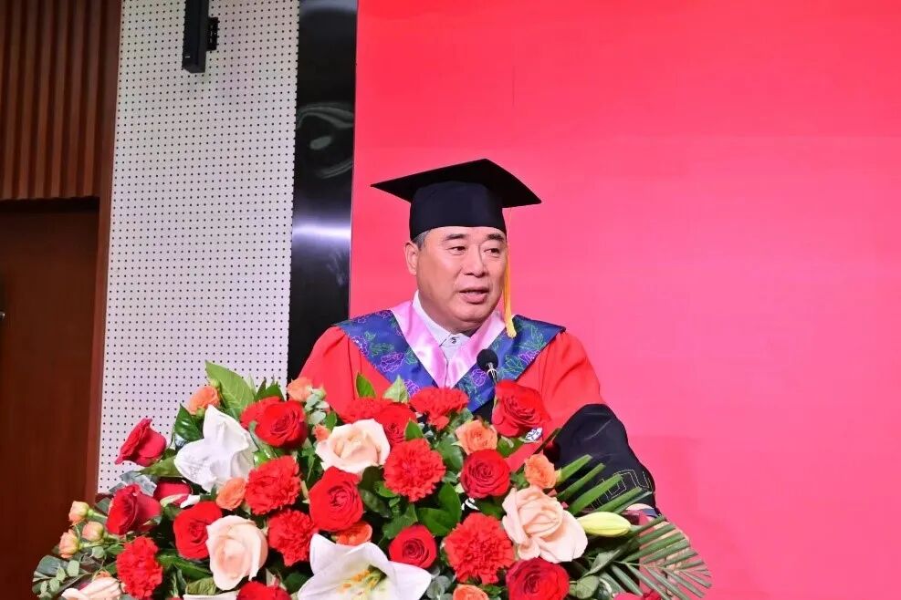 授位仪式结束后,李成家院长带着久久无法平复的心情在发言中对本次毕业典礼进行了总结,他放弃了预先准备的讲话稿,随着感情的起伏,表达着自己真实的感受。他再次向毕业生们描述了母校的样子,讲述了自己对每一位毕业生的像家人般的考虑,学院会在每年在春天花开之际组织“海棠依旧”系列活动,邀请所有毕业生返校相聚。院长对毕业生表示了热烈的祝贺,并对他们在学院取得的成绩给予了充分肯定,鼓励大家要保持初心,不断进取,取得优秀的成绩。