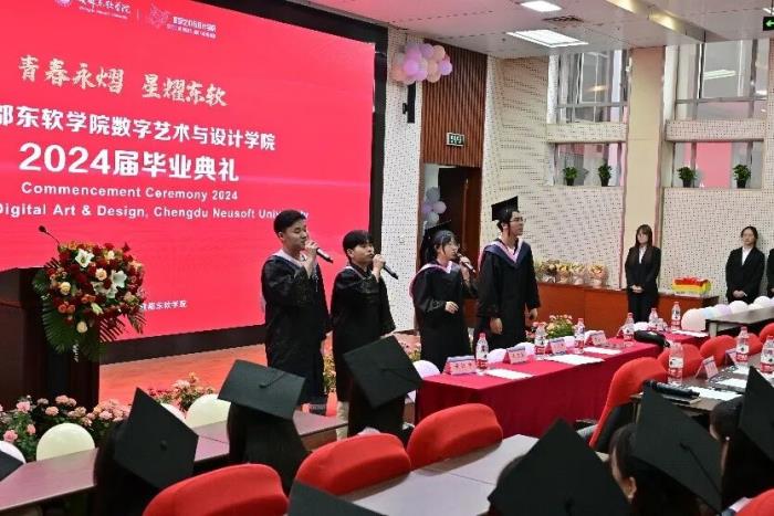 2024年6月18日,成都东软学院数字艺术与设计学院2024届学生毕业典礼在A3号楼104国际报告厅隆重举行。这是学院首次单独举行的毕业典礼,同时也是学院首次开展的学位授予仪式。