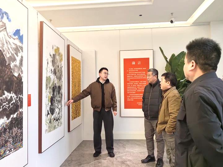 随后,调研组来到“一江碧水向东流”长江文化山水画作品展。展览以笔墨丹青生动诠释了长江流域的自然风光与巴蜀人文底蕴。李成家院长指出,这不仅是对生态文明建设的艺术礼赞,更是开展课程思政的鲜活教材。学院将以此次调研为契机,深挖巴蜀文化富矿,引导师生在数字艺术创作中讲好中国故事、四川故事,将文化自信融入教育教学全过程。