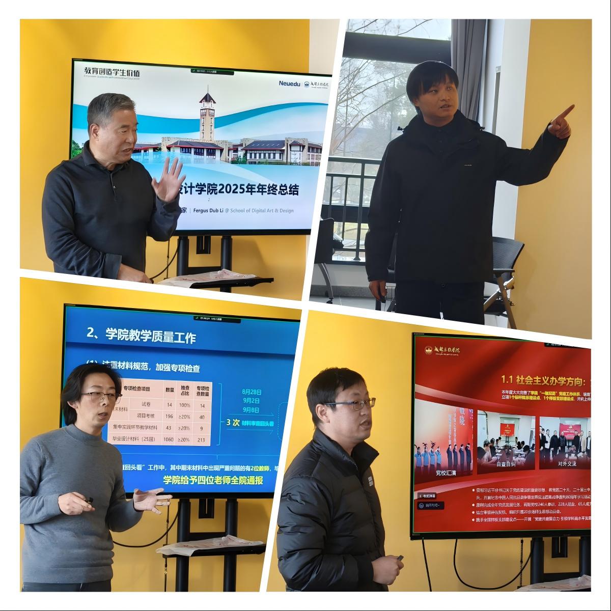 最后,学院院长李成家对数字艺术与设计学院2025年度工作作了总结报告。学院2025年度工作围绕教育教学、专业建设、产教融合与科研创新等方面扎实推进,成果丰硕。一、教育教学质量评价位居学校前列,彰显综合实力。教学运行质效提升,通过线上线下展览拓展空间,以企业赛事激发创意,深化校企协同实践教学,聚焦非遗与地域文化开展数字化实训。教研教改亮点突出,推进 AI 赋能教学改革,教师斩获多项国家级以上竞赛荣誉。二、专业建设成果亮眼,多个专业稳居全国领先,以人才培养方案为抓手,专业融合、课程建设及课程思政成效显著,“一师一课” 基本落实。三、师资队伍持续优化,形成7堂院长课、1 堂书记课的特色培训模式,同步推进骨干、青年干部及资深教师培训,通过人才引进与表彰夯实力量。四、产教融合深度拓展,与头部企业共建课程,圆满承办全国好创意颁奖盛典及高级别论坛,获最高专业建设质量奖;深度服务都江堰地方经济,文庙街、直播基地等项目成效良好。五、科研工作稳步推进,师生攻坚克难,超计划完成科研进款任务,位列全校第二;国际国内赛事再添佳绩,三维技术国奖金奖回归。六、学生工作扎实,“专业开放月” 助力新生融入,毕业生实现高质量就业。七、审核评估中,刘阳河等教师授课获专家表扬,学院文档与相关人员表现获认可,关键环节交出优异答卷。同时,院长也清醒指出学院当前不足:课程思政需系统深化,高质量课程有待开发、专业特色建设缺乏顶层设计与任务分解、产教融合未达突破性进展,科研成果与进款分布不均、课堂管理与实验室利用率待提升、管理体系效能需强化。新的一年,学院将直面挑战、精准发力,持续深化 AI 赋能教学改革,加强专业融合与微专业建设,推动产教融合升级与科研关键突破,全面提升人才培养质量与学院综合影响力。