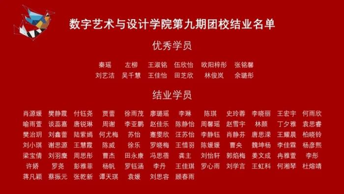 经团课学习、团课答辩及结业考试后,数字艺术与设计学院以下同学综合考核合格,给予结业,公示如下。