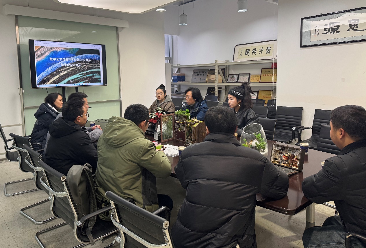 当课堂创意碰撞市场需求,当艺术设计赋能绿色产业,一场关于微景观项目的深度对话,为产学融合注入新活力!2025年1月13日,成都柯创农业科技有限公司与数字艺术与设计学院视觉传达系展开深度交流,聚焦微景观项目产学落地事宜,共绘“艺术+商业”的协同发展蓝图。